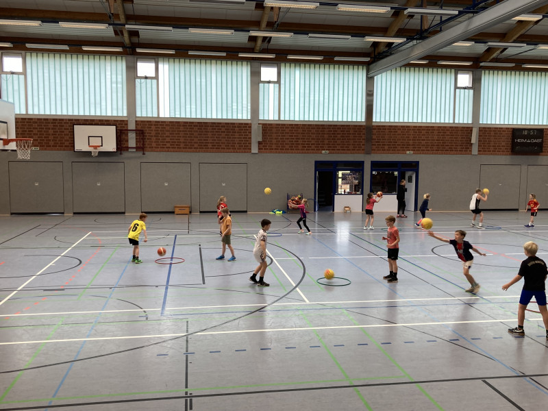 Am 13. und 14. November nahm die Grundschule Glandorf an der bundesweiten Basketball-Grundschulwoche teil. Am Donnerstag durchliefen die Drittklässler, am Freitag die Viertklässler ein abwechslungsreiches Programm mit sechs Stationen – von Ballkontrolle über Dribbeln und Korbwurf bis hin zu kleinen Spielen.