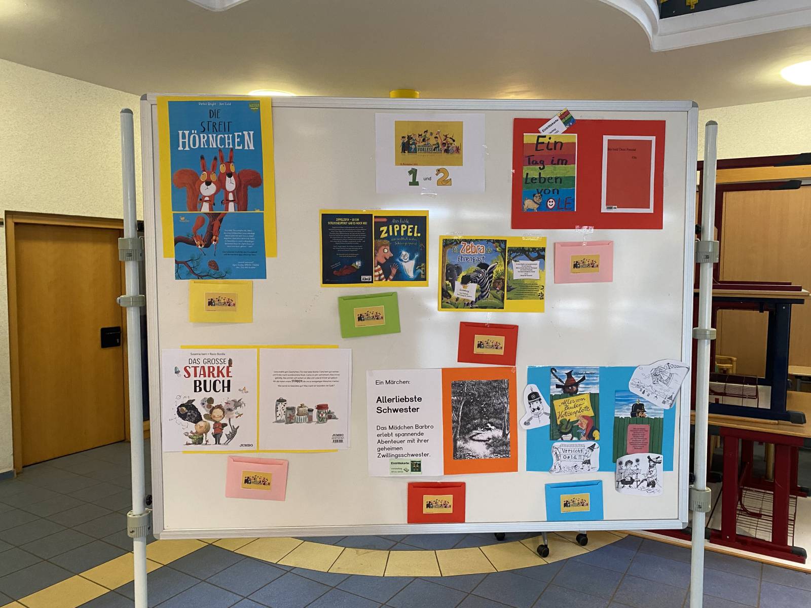 Anschließend gab es für das jeweilige Buch eine Eintrittskarte, die in den entsprechenden Vorleseräumen eingelöst werden konnte. Es gab eine bunte Auswahl verschiedener Bücher, von lustig bis spannend war alles vertreten. Eine willkommene Abwechslung - wir sind nächstes Jahr auf jeden Fall wieder dabei!