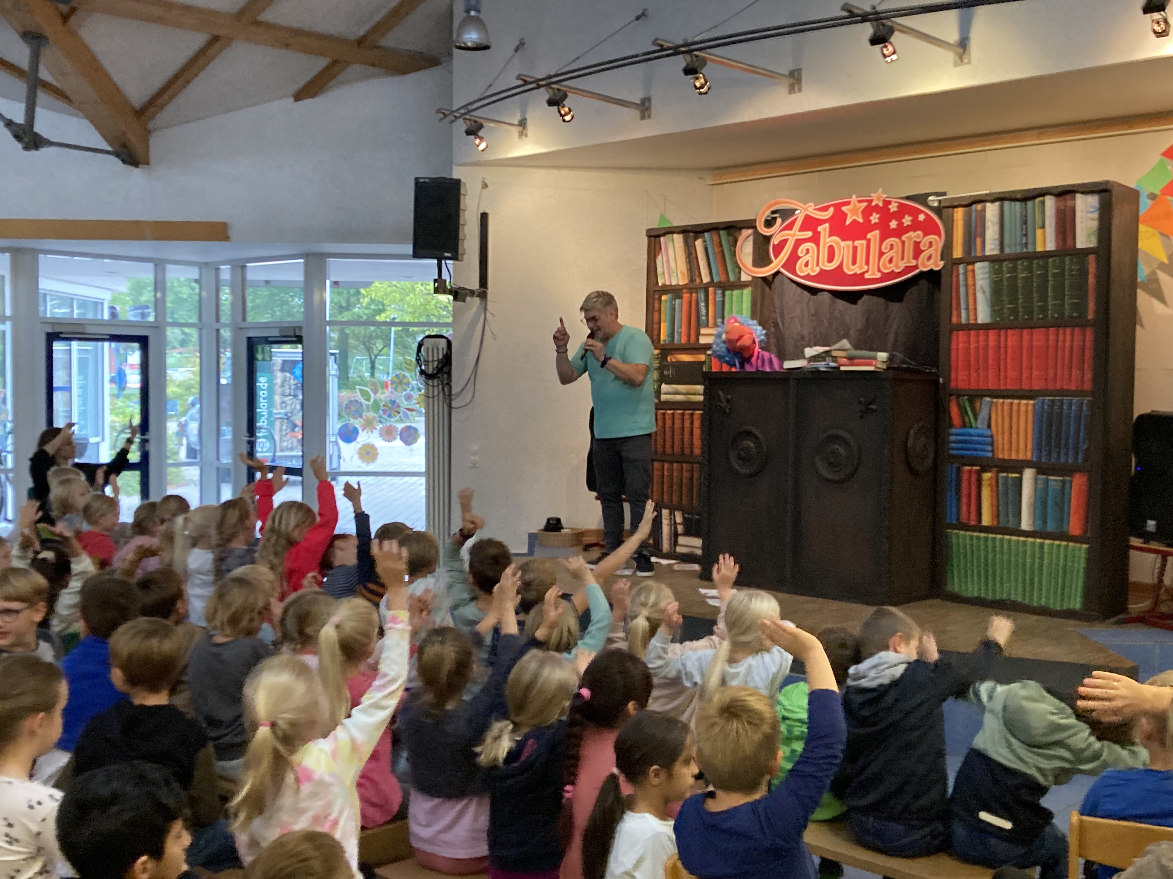 Am 16.9. war Yogi mit seinen Freuden Baba Book und Laila Musica zu Besuch an der Grundschule. In der Show dreht sich alles um das Thema Lesen. Die drei Freunde tauchen in unterschiedliche Bücherwelten ein, erleben fantastische Abenteuer und stellen dabei auch immer wieder interessante Bücher vor. Besonders lebendig wird "Fabulara" durch die gelungene Mischung an eigens geschriebenen Texten und Songs, wie z.B. "Wunderland" und "Fantasie". Im Februar 2025 kommt Yogi mit seinen Freunden ein zweites Mal an die Grundschule. Dort werden sie gemeinsam mit den Kindern einen Workshop gestalten und sich noch intensiver mit dem Thema Lesen beschäftigen. Es ist schön zu sehen, wie die Leselust der Kinder fantasievoll geweckt und erwiesenermaßen nachhaltig gesteigert wird.